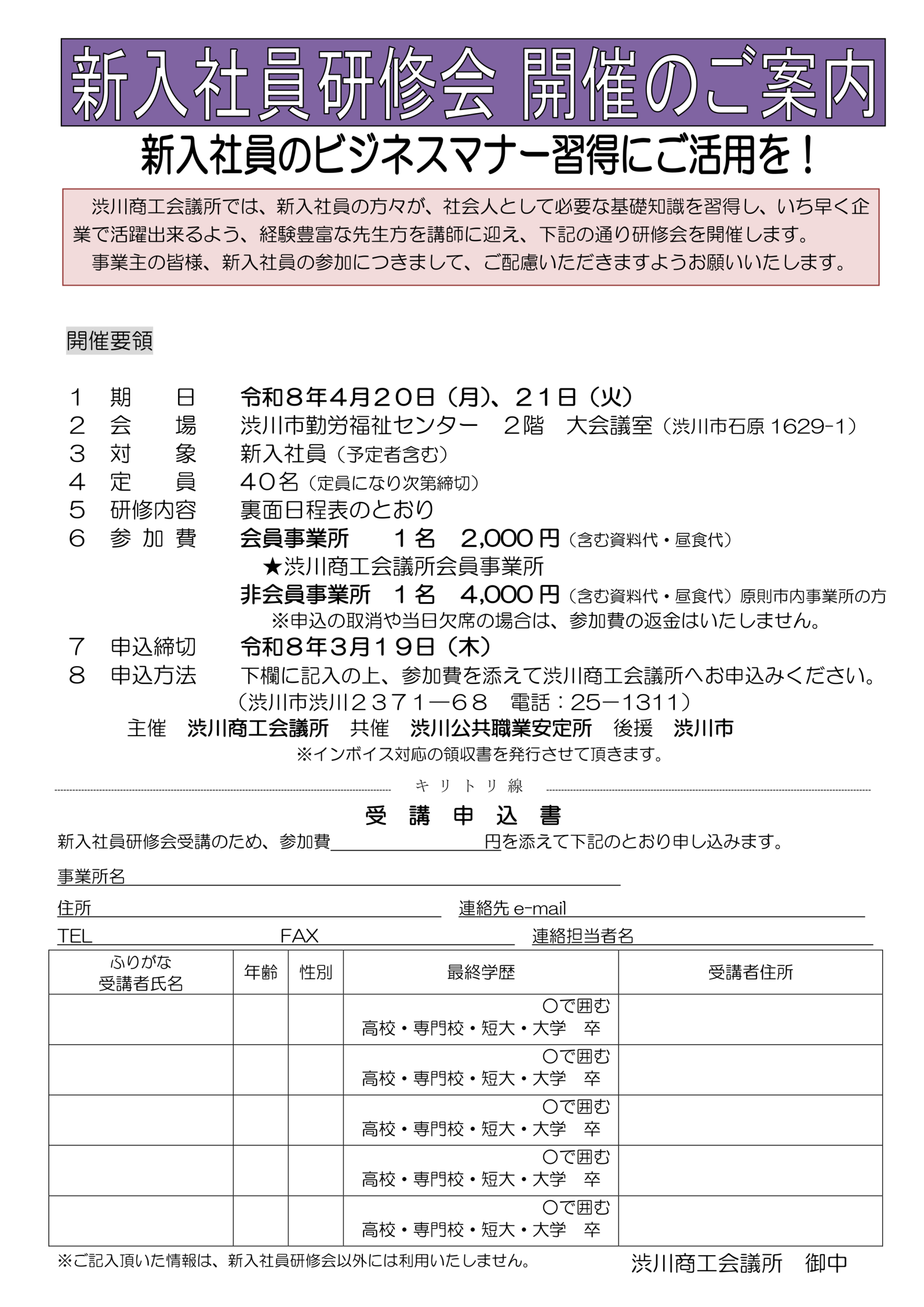 | 2025.4.1 市 | 令和7年度しぶかわde創業チャレンジ支援事業補助金の公募が開始されました |